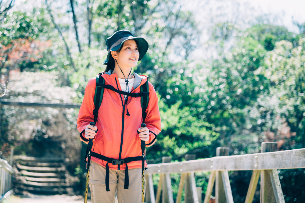 ※Walking poles can aid balance and take pressure off the knees.