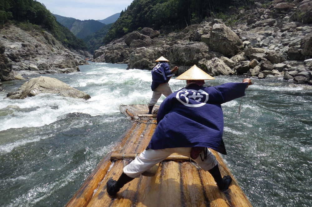 Rafting is a summer tradition on the Kitayama River. Rafts are made of logs joined together to form a raft approximately 30 meters in length, and it takes about one hour to float down the raging river. While you can enjoy a leisurely view of the canyon when the current is slow, the thrill of the ride is unpredictable when the raft reaches the rapids. The exquisite control of the rafters is impressive! This is a "roller coaster of nature" that you can only experience here, so be sure to give it a try.