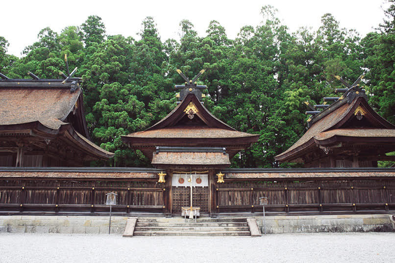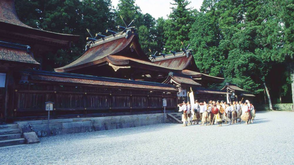 This shrine, with its beautiful sweeping cypress bark roofs, is one of the three main shrines of the Kumano faith, of which there are more than 3,000 shrines. Originally located at Oyunohara, a sandbank at the confluence of Kumano-gawa and Otonashi-gawa Rivers, the shrine was moved to its current location following the great floods of 1889. The Oyunohara torii shrine gate marks the original location.