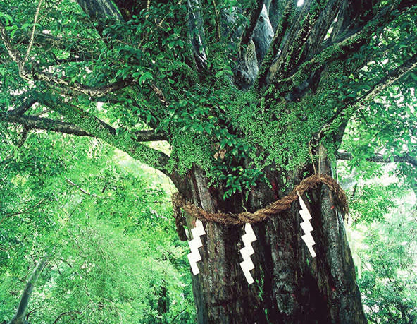 Shide, the lighting-bolt-shaped folded paper streamers, often attached to Shimenawa (rice straw rope), are used for purification in Shinto rituals, and are hung around sacred areas. The shimenawa over Nachi Falls indicates the presence of a kami (deity).